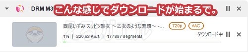 - 左にあるダウンロード中をクリックすると、ダウンロード状況が確認できるで。