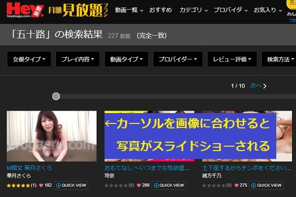 Hey動画月額見放題プランは、AV女優(20代〜50代)、素人(若い子、人妻・熟女)、外国人(白人・黒人)、エロアニメ、ジャンルは中出し、アナル、フェラ抜き・口内射精、妊婦、近●相●、オナニー、レズ、NTR・不倫、盗撮、VR...メチャンコあり過ぎて紹介しきれへんけど、無修正動画業界きってのストリーミング専門サイトのことや。