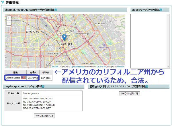 ちょっと見づらいんやけど、間違いなくアメリカのカリフォルニア州から配信されてたで。